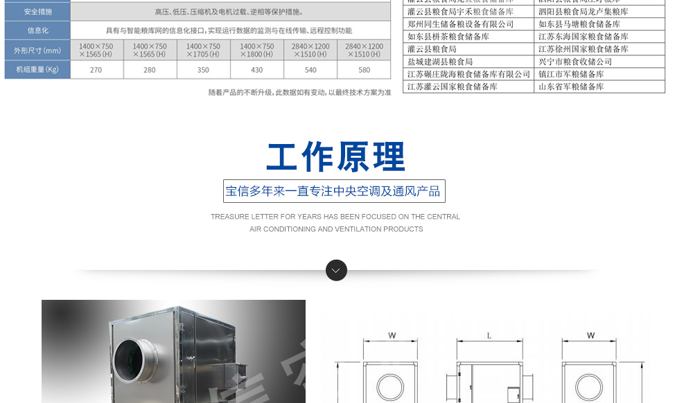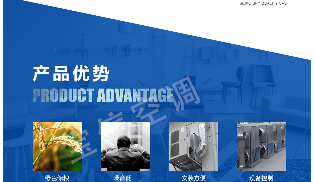 糧倉頂層降溫空調(diào)機組主要由風(fēng)冷制冷降溫系統(tǒng)、空氣循環(huán)系統(tǒng)、智能控制系統(tǒng)組成,主要是針對我國糧食倉儲環(huán)境特點和氣候特征綜合分析而特別設(shè)計的糧倉頂層降溫系統(tǒng),是各糧食儲備庫實現(xiàn)綠色儲糧、科學(xué)保糧目標(biāo)的重要保障手段,其性能達到國內(nèi)先進水平。