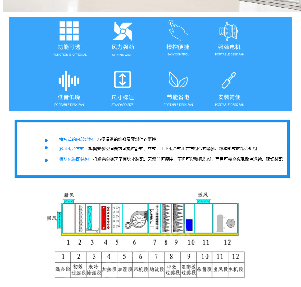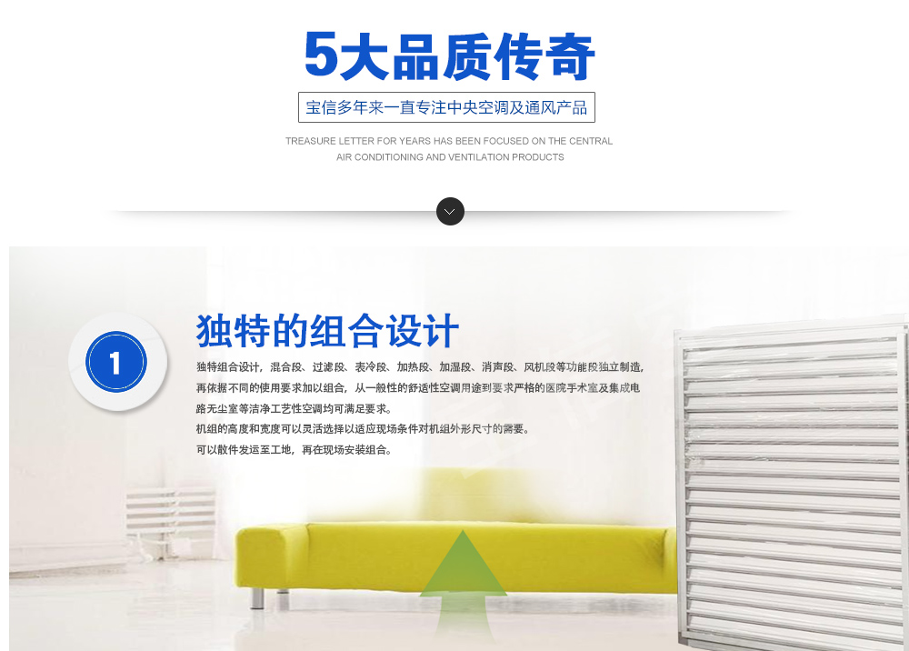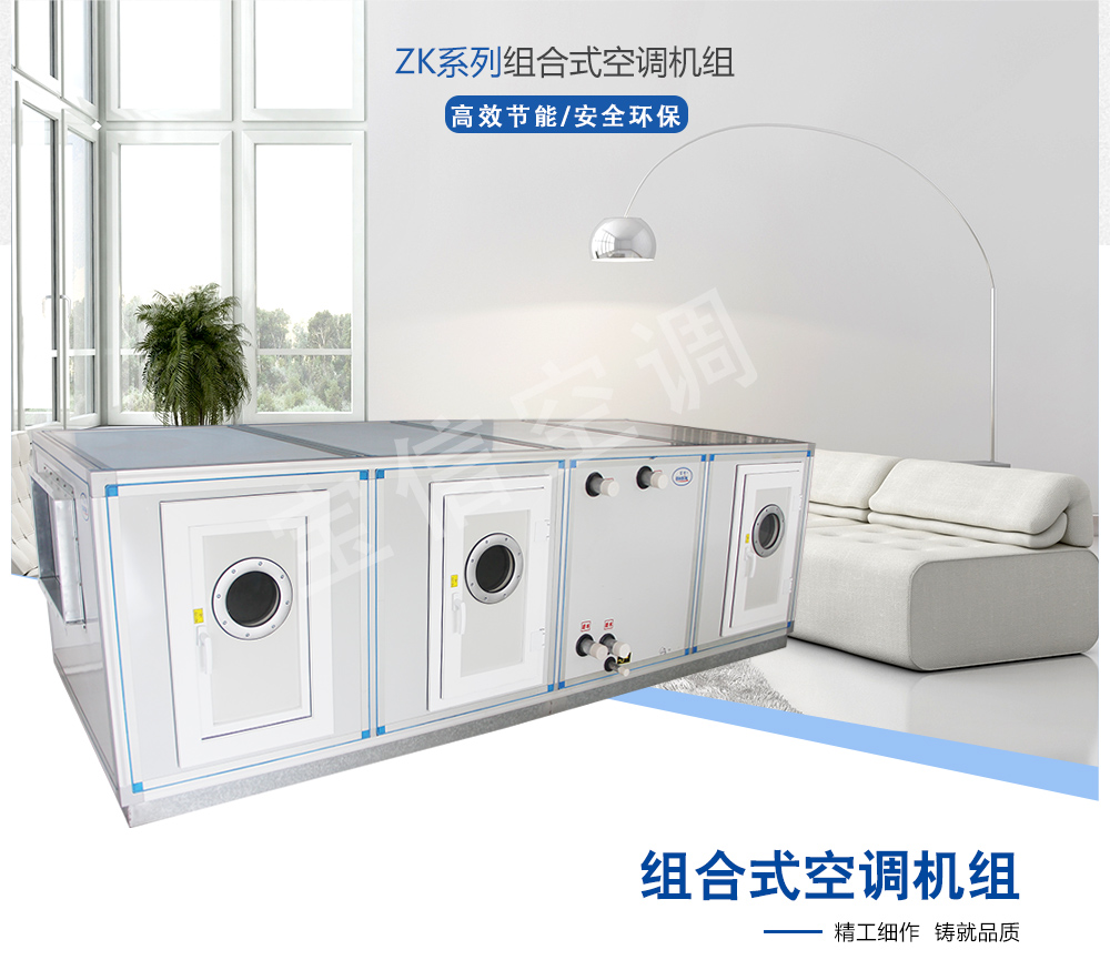 ZK系列組合式空調機組是我單位結合數十年專業生產空調機組的經驗,借鑒國內外同類機組優點的基礎上,引進先進技術和生產工藝開發而成。該機組可對空氣進行冷卻、干燥、加熱、加濕、過濾、凈化,并具有消聲功能。可廣泛適用于商場、賓館、寫字樓、體育館等需空氣集中處理的場合以及醫院手術室、制藥、卷煙、食品、精密儀器制造等凈化空調場合。