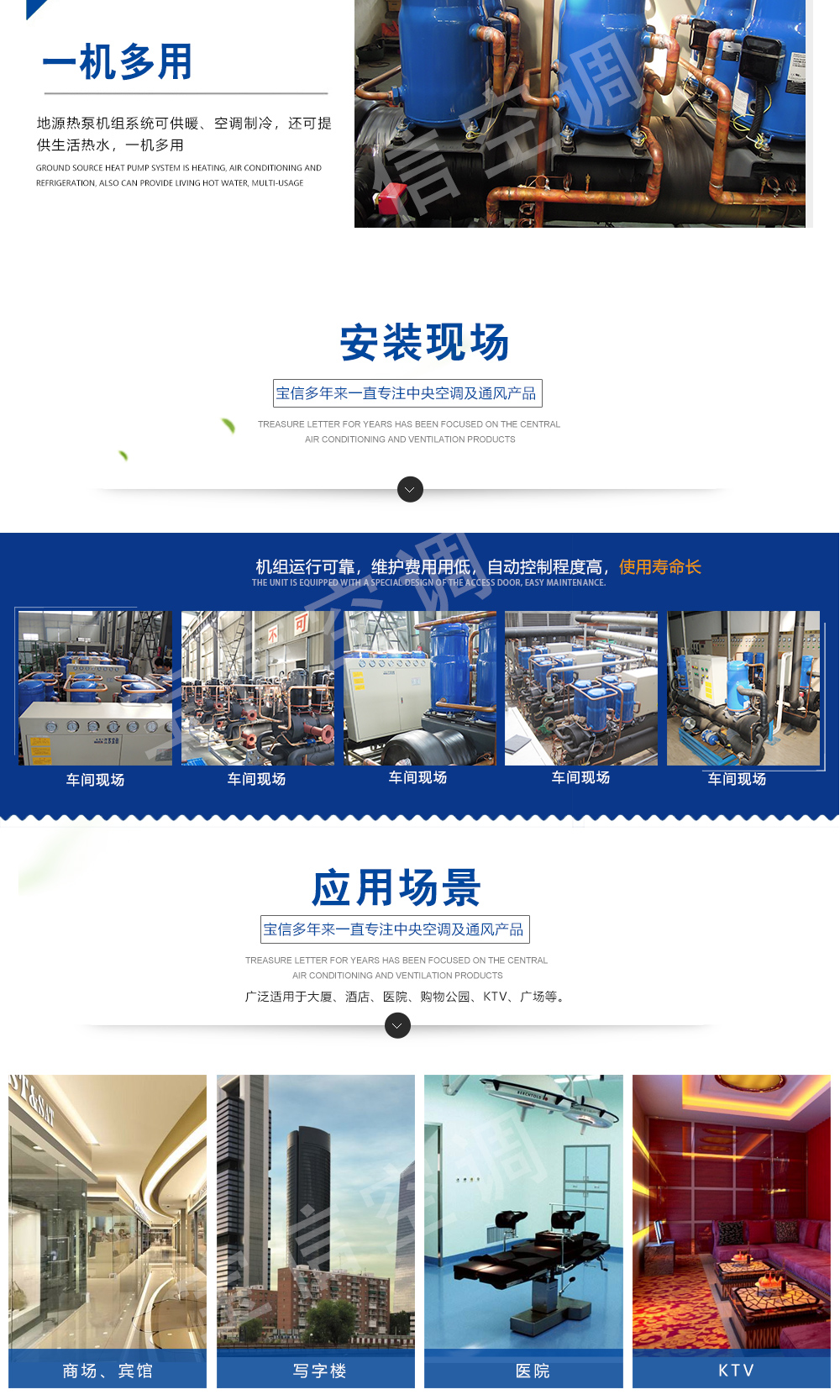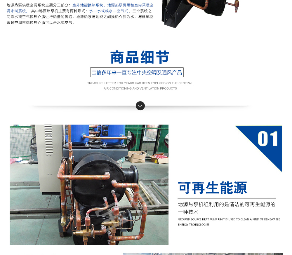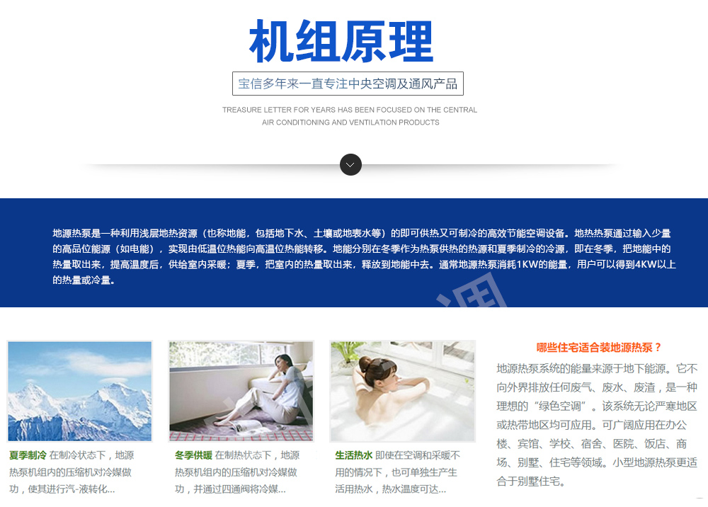 水/地源熱泵中央空調(diào)式我公司吸取世界各國地源熱泵產(chǎn)品精華,自主開發(fā)的新型供暖設(shè)備.該機(jī)組既保持與國外先進(jìn)技術(shù)同步,又適應(yīng)中國國情,是一種集制冷、供暖、供生活熱水為一體的高效節(jié)能的綠色環(huán)保中央空調(diào)。