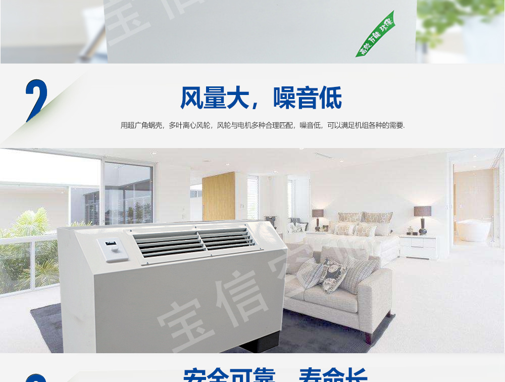 FP系列風(fēng)機(jī)盤(pán)管機(jī)組吸收了國(guó)內(nèi)外同類產(chǎn)品的先進(jìn)強(qiáng)項(xiàng)技術(shù),依據(jù)國(guó)家相關(guān)標(biāo)準(zhǔn),并經(jīng)反復(fù)試制和測(cè)定,高效率的完成了一系列的技術(shù)設(shè)計(jì)改進(jìn),故而性能優(yōu)越、用途廣泛、品種齊全、效率高、故障少、噪聲低,其品種有臥式暗裝、臥式明裝、立式暗裝、立式明裝、卡式機(jī)組等系列,與新風(fēng)機(jī)組配套后廣泛應(yīng)用于賓館、醫(yī)院、辦公用房、高級(jí)會(huì)議廳、展覽廳等低噪聲場(chǎng)所,是集中式空調(diào)系統(tǒng)理想的末端裝置。