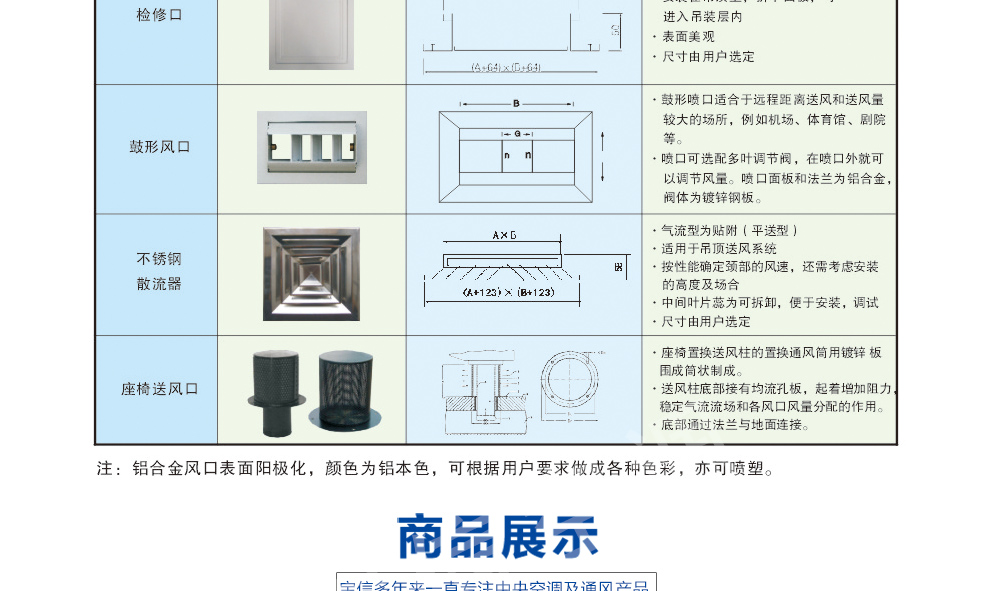 根據需要風量[送風或排(回)風],在風口頸部(或風口進出口斷面處)允許的風速范圍內,確定所需風口的尺寸。如按風口風速(一般為2~5m/s)確定風口尺寸時,應考慮風口的有效面積率(一般為30%~60%)。